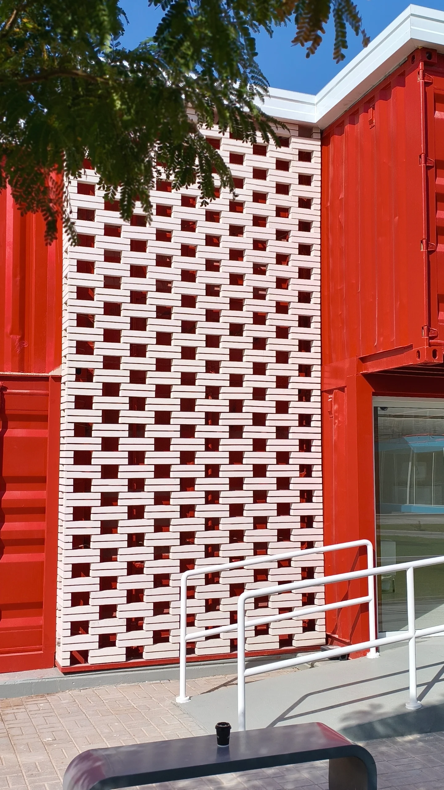 In this project, patterned handmade tiles by S.A.C.O were used. The project was developed in collaboration with Qatar Museums, and the artist involved is Rirkrit Tiravanija.