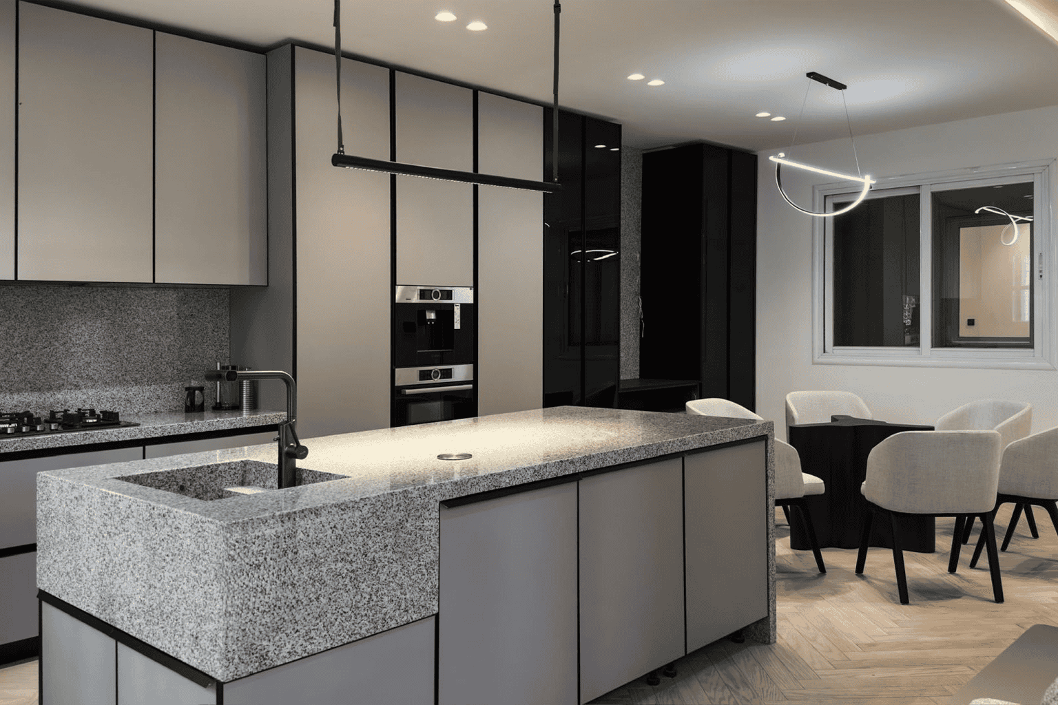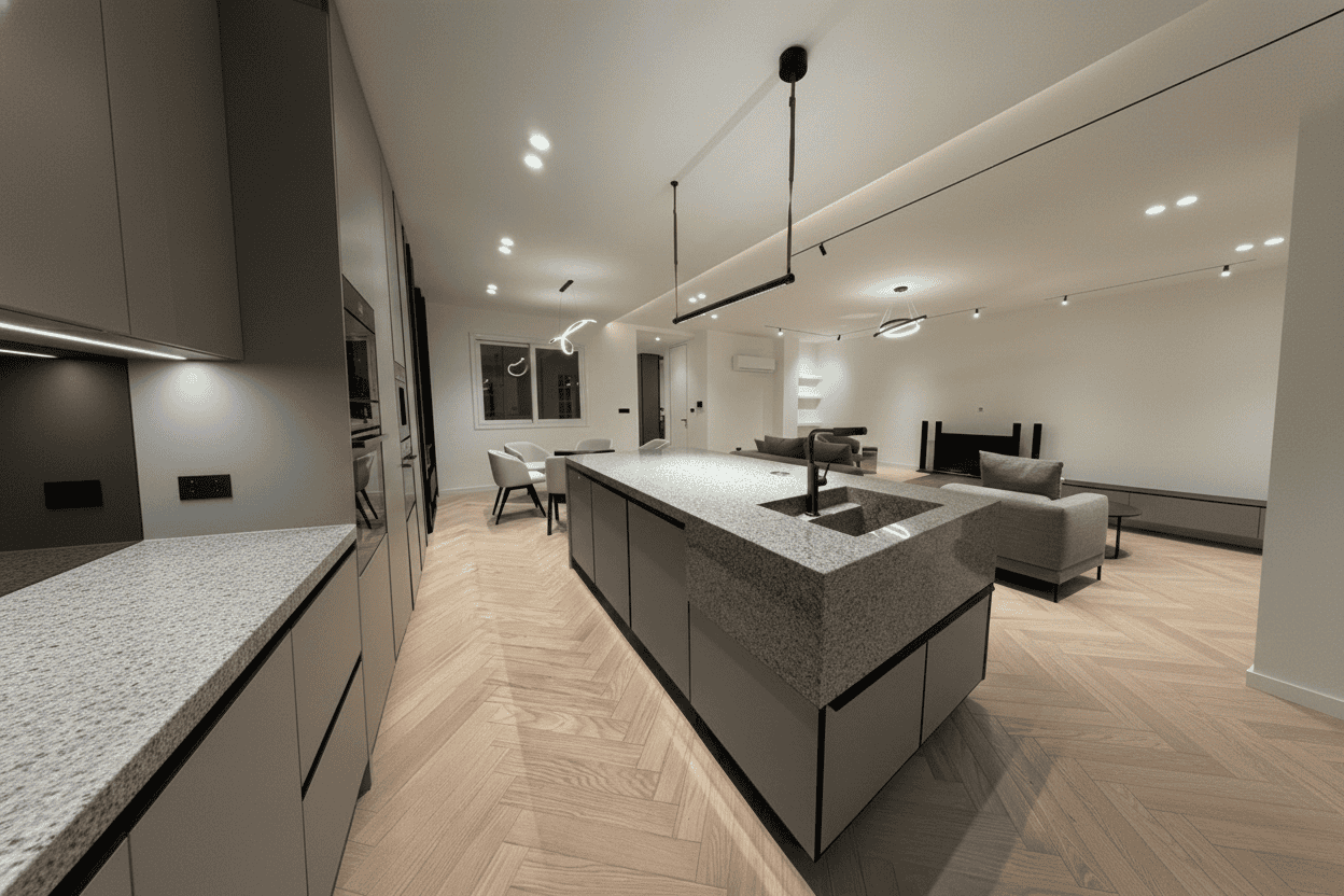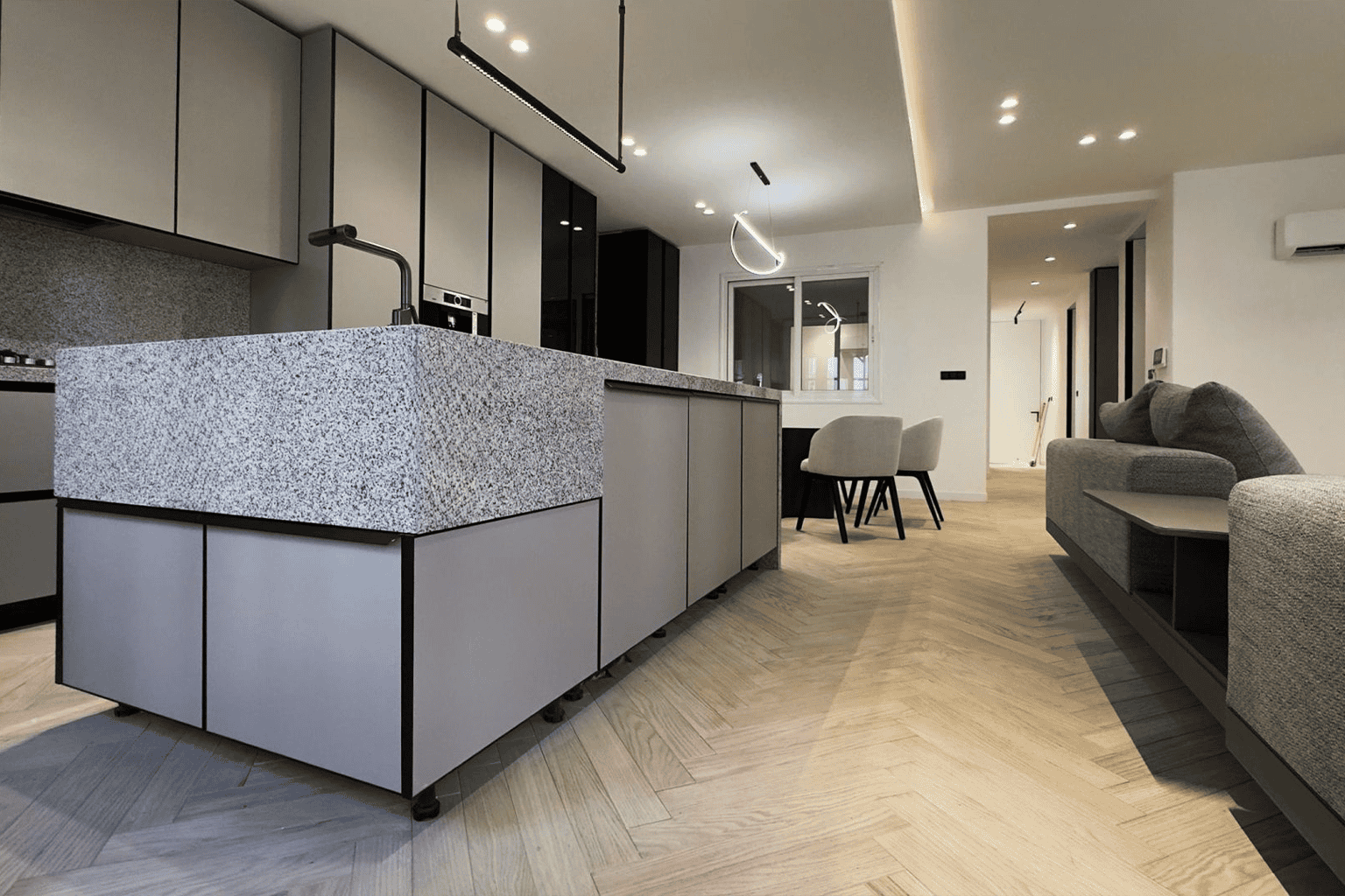 Sanded White is a natural stone with a soft white tone and a fine sanded texture. Its smooth, matte finish enhances the stone’s natural character and brings a clean, calm, and sophisticated look to architectural spaces, ideal for modern and minimal designs.